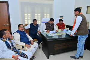 रायपुर। भारतीय जनता पार्टी प्रदेश कार्यालय कुशाभाऊ ठाकरे परिसर स्थित सहयोग केन्द्र में मंगलवार को कैबिनेट मंत्री गजेन्द्र यादव ने कार्यकर्ताओं से विभिन्न विषयों से संबंधित आवेदन प्राप्त किए। इस दौरान उन्होंने कई आवेदनों के त्वरित निराकरण हेतु संबंधित अधिकारियों को आवश्यक निर्देश भी दिए।
