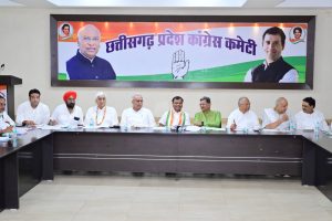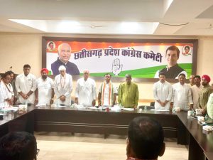 रायपुर। प्रदेश कांग्रेस कमेटी की महत्वपूर्ण बैठक प्रदेश कांग्रेस अध्यक्ष दीपक बैज की अध्यक्षता तथा नेता प्रतिपक्ष डॉ. चरणदास महंत, पूर्व मुख्यमंत्री भूपेश बघेल, पूर्व उपमुख्यमंत्री टी.एस. सिंहदेव, पूर्व मंत्री ताम्रध्वज साहू, पूर्व मंत्री रविन्द्र चौबे, प्रभारी महामंत्री मलकीत सिंह गैदू की उपस्थिति में राजीव भवन में संपन्न हुई।