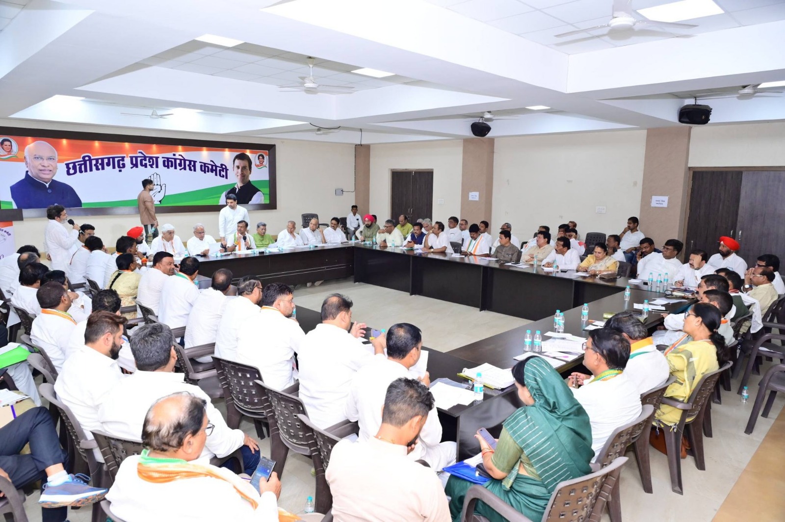 जिला प्रभारीगण सरगुजा डॉ. प्रेमसाय सिंह, रायपुर शहर अरूण वोरा, रायपुर ग्रामीण विनोद चंद्राकर, बलौदाबाजार कन्हैया अग्रवाल, बलरामपुर सफी अहमद, मनेन्द्रगढ़-चिरमिरी-भरतपुर डॉ. जे.पी. श्रीवास्तव, गरियाबंद अमरजीत चावला, महासमुंद हितेन्द्र ठाकुर, बालोद शाहिद खान, दुग शहर सीमा वर्मा, दुर्ग ग्रामीण नवाज खान, भिलाई प्रमोद दुबे, बेमेतरा सुनील महेश्वरी, राजनांदगांव शहर दीपक दुबे, मोहला-मानपुर-अंबागढ़ चौकी भुवनेश्वर बघेल, खैरागढ़-छुईखदान-गंडई कुलबीर छाबड़ा, कवर्धा पदम कोठारी, बस्तर ग्रामीण देवचंद मातलम, सुकमा अवधेश गौतम, कोण्डागांव नरेश ठाकुर, कांकेर लेखराम साहू, बिलासपुर शहर सुबोध हरितवाल, बिलासपुर ग्रामीण शैलेश नितिन त्रिवेदी, गौरेला-पेण्ड्रा-मरवाही शैलेश पांडे, मुंगेली प्रेमचंद जायसी, कोरबा ग्रामीण डॉ. विनय जायसवाल, जांजगीर-चांपा प्रशांत मिश्रा, सक्ति हरीश परसाई, रायगढ़ ग्रामीण चंद्रदेव राय, सारंगढ़-बिलाईगढ़ नोबेल वर्मा, जशपुर भानुप्रताप सिंह, सूरजपुर मनोज गुप्ता, उपस्थित थे।