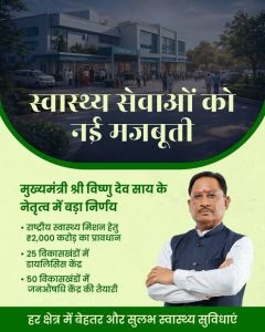 गंभीर मरीजों को तत्काल रेफर कर बेहतर इलाज सुनिश्चित किया जा रहा है। साय सरकार की यह पहल केवल स्वास्थ्य सेवाओं तक सीमित नहीं, बल्कि बस्तर में भरोसा, जागरूकता और विकास की नई नींव भी रख रही है।बस्तर में शुरू हुई यह स्वास्थ्य क्रांति अब जनकल्याण की नई पहचान बनती नजर आ रही है।