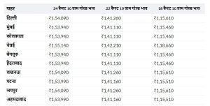 राजधानी दिल्ली में आज 24 कैरेट सोना 10 प्रति 10 ग्राम महंगा हुआ है, वहीं 22 कैरेट सोने के दाम में भी 10 की बढ़ोतरी दर्ज की गई है। हालांकि, पिछले दो दिनों में सोने की कीमतों में बड़ी गिरावट आई थी, जिससे ग्राहकों को थोड़ी राहत मिली थी। दूसरी ओर, चांदी की कीमतों में आज गिरावट देखने को मिली है। दिल्ली में एक किलोग्राम चांदी 100 सस्ती होकर करीब 254,900 पर पहुंच गई है। मुंबई और कोलकाता में भी कीमतें इसी स्तर पर बनी हुई हैं, जबकि चेन्नई में चांदी सबसे महंगी बनी हुई है।