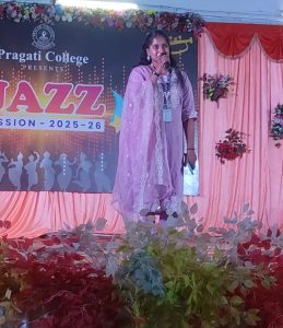 रायपुर। प्रगति महाविद्यालय में “जैज 2026” गुरुवार और शुक्रवार को गायन और नृत्य कार्यक्रम का आयोजन किया गया। कार्यक्रम की शुरूआत मां सरस्वती की पूजा-अर्चना से हुई। कार्यक्रम के प्रारंभमें प्राचार्य डॉ. सौम्या नैयर ने अतिथियों का स्वागत किया एवं विद्यार्थियों को शुभकामनाएं दीं। अपने उद्बोधन में कहा कि जीवन ईश्वर की संगीतमय अभिव्यक्ति है।