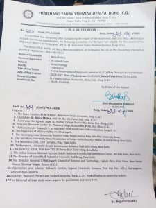 पाटन। नगर के वार्ड क्रमांक 3 निवासी निकिता मिश्रा ने हेमचंद विश्वविद्यालय से बायोटेक्नोलॉजी विषय में पीएचडी की उपाधि प्राप्त कर क्षेत्र का नाम गौरवान्वित किया है। उन्होंने “इन विट्रो कंजर्वेशन ऑफ डिप्लोसाइक्लोज पालमेट्स (एल.) सी. जेफरे थ्रू वेरियस मेथड” विषय पर अपना शोधकार्य पूर्ण किया। निकिता ने यह शोधकार्य रुवांबांधा स्थित सेंट थॉमस कॉलेज में सुपरवाइजर (गाइड) डॉ. उज्ज्वला सूपे के मार्गदर्शन में संपन्न किया, जिसमें विभागाध्यक्ष डॉ. वी. शांति एवं कालेज की प्राचार्य डॉ. शाइनी मेंडोंस का विशेष सहयोग रहा। निकिता मिश्रा नगर के वरिष्ठ पत्रकार संदीप मिश्रा एवं मंजू मिश्रा की सुपुत्री हैं। साथ ही वे पाटन निवासी अधिवक्ता शुभम ठाकुर की पत्नी एवं वरिष्ठ अधिवक्ता राजेश ठाकुर की पुत्रवधू हैं। वे अंकिता ठाकुर की छोटी बहन तथा परिणीता मिश्रा की बड़ी बहन हैं तो इसके अलावा निकिता शुभिक्षित ठाकुर की माता जी है निकिता के पीएचडी पूर्ण करने पर परिजनों, मित्रों एवं नगरवासियों ने हर्ष व्यक्त करते हुए उन्हें शुभकामनाएं दी हैं।