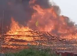 महायज्ञ में विघ्न: अयोध्या के राजघाट में अचानक लगी आग, धू-धू कर जला पंडाल, अफरा-तफरी का माहौल