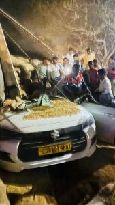 रायपुर में धान से लदा ट्रक कार के ऊपर पलट गया। इस हादसे में कार सवार पति-पत्नी और ड्राइवर की मौत हो गई। सर्जरी के बाद दंपती घर लौट रहे थे। घटना विधानसभा थाना क्षेत्र की है। मृतकों की पहचान राजकुमार शर्मा (66), पद्मा शर्मा के रूप में हुई है। जो बलौदाबाजार के रहने वाले थे। ड्राइवर का नाम प्रवीण बताया जा रहा है। बड़े बेटे ने पुणे से ऑनलाइन कैब बुक की थी। इसी से शहर से बाहर निकले ही थे कि हादसा हो गया।