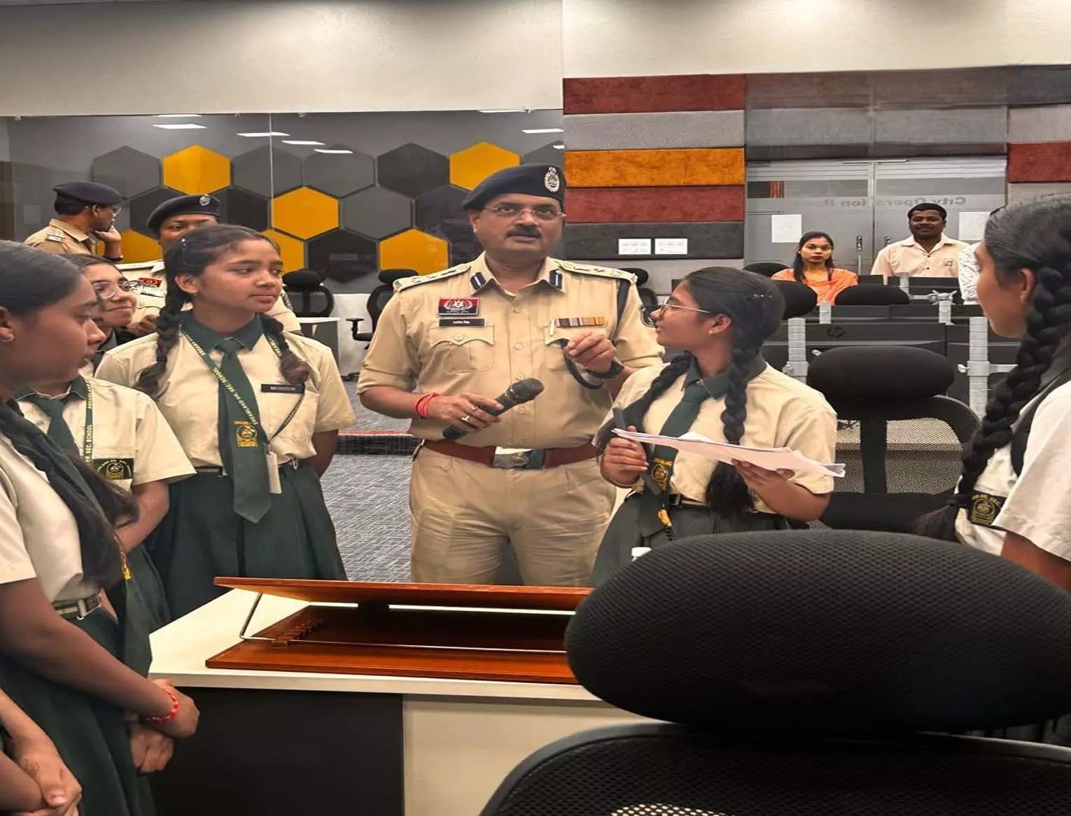 भ्रमण का अगला पड़ाव ‘इंटीग्रेटेड कंट्रोल एंड कमांड सेंटर’ रहा, जहाँ छात्र यह देखकर हैरान रह गए कि, कैसे एक ही छत के नीचे डिजिटल तकनीक से पूरे शहर के ट्रैफिक और सुरक्षा को मॉनिटर किया जाता है। छात्रों ने यहाँ इंटेलिजेंट ट्रैफिक मॉनिटरिंग सिस्टम (ITMS) की बारीकियों को समझा और कुछ ने तो खुद सिस्टम ऑपरेट कर इसका अनुभव भी लिया। इसके बाद विद्यार्थियों की टोली साइबर थाने पहुंची, जहाँ उन्हें आज के दौर के सबसे बड़े खतरों-ऑनलाइन फ्रॉड और डिजिटल अरेस्ट-के बारे में सतर्क किया गया। अधिकारियों ने उन्हें 1930 हेल्पलाइन और सोशल मीडिया सुरक्षा के जादुई मंत्र दिए।