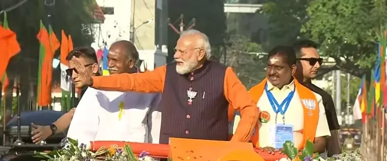 नई दिल्ली। प्रधानमंत्री नरेन्द्र मोदी आज शुक्रवार को चुनाव प्रचार के सिलसिले में चेन्नई से पुडुचेरी पहुंचे और वहां एक लंबा रोड शो किया। यह रोड शो पुडुचेरी में नौ अप्रैल को होने वाले विधानसभा चुनावों से पहले आयोजित किया गया। प्रधानमंत्री मोदी शाम चार बजकर 15 मिनट के बाद अजंता सिग्नल जंक्शन से अन्ना स्क्वायर तक 1.7 किलोमीटर लंबा रोड शो निकालते हुए पहुंचे। वहीं रोड शो के दौरान प्रधानमंत्री मोदी ने राजग के समर्थन में जनता को संबोधित किया। यह रैली एआईएनआरसी की अगुवाई वाली सत्तारूढ़ सरकार और राष्ट्रीय जनतांत्रिक गठबंधन के समर्थन में आयोजित की गई थी। राजग में भाजपा, अन्ना द्रमुक और नवगठित एलजेके शामिल हैं। भाजपा ने बताया कि प्रधानमंत्री मोदी के रोड शो में राजग के नेता और उम्मीदवार भी मौजूद थे। रैली में 30,000 से अधिक लोगों ने हिस्सा लिया। भाजपा के अनुसार, यह रोड शो चुनाव प्रचार को सक्रिय करने और जनता के बीच राजग की नीतियों और कार्यक्रमों को प्रभावी ढंग से पहुंचाने के उद्देश्य से आयोजित किया गया।
