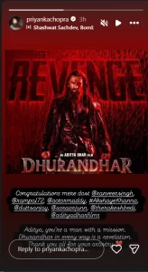 ‘धुरंधर: द रिवेंज’ पर प्रियंका चोपड़ा का रिएक्शन: रणवीर सिंह और आदित्य धर की जमकर की तारीफ