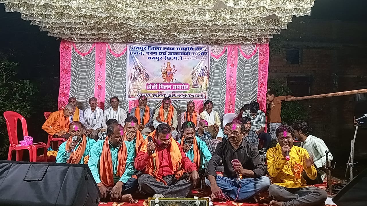 रायपुर। रायपुर जिला लोक संस्कृति सेवा,भजन,फाग एवं जसझाँकी समिति रायपुर के तत्वावधान में होली मिलन समारोह का कार्यक्रम शीतला माता मंदिर टिकरापारा रायपुर में आयोजित किया गया।