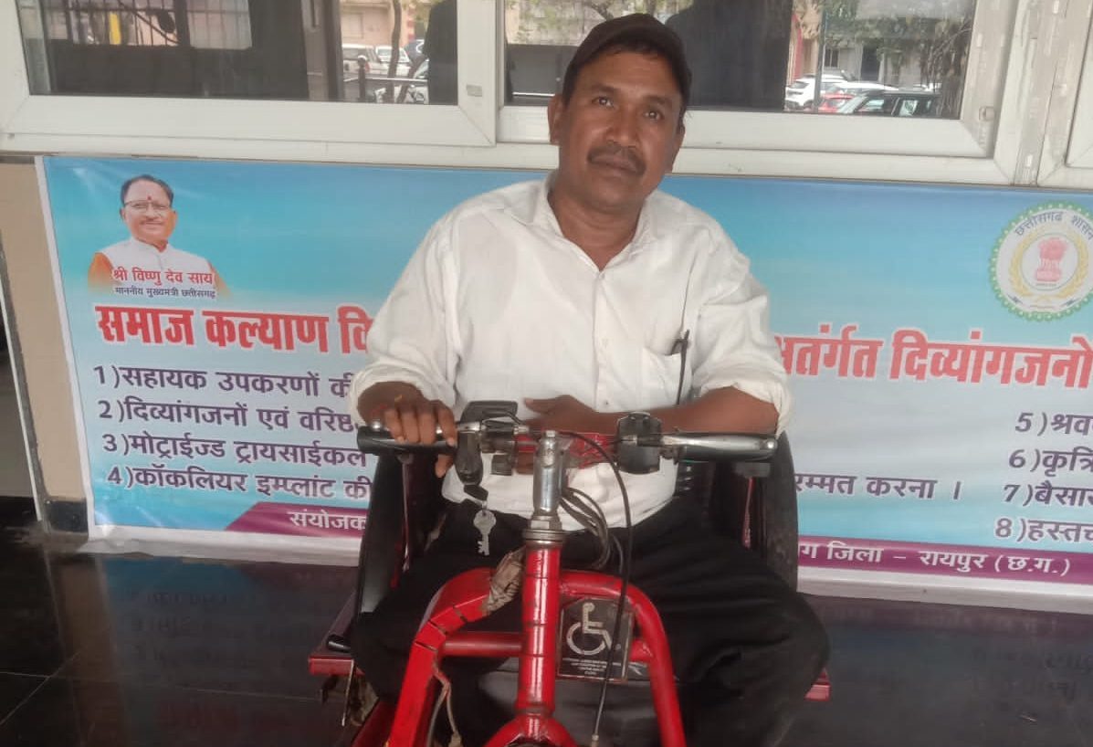 रायपुर। जिले के सोनगोंगरी निवासी 50 वर्षीय अस्थि बाधित दिव्यांग रमेश निर्मलकर की जिंदगी में सरकारी पहल ने एक नई रफ्तार भर दी है। समाज कल्याण विभाग द्वारा पूर्व में उन्हें बैटरी चालित साइकिल प्रदान की गई थी, जिससे वे अपने दैनिक कार्य स्वयं करने लगे थे और आत्मनिर्भरता की ओर बढ़ रहे थे, लेकिन समय के साथ साइकिल की बैटरी खराब हो जाने से उनकी दिनचर्या प्रभावित होने लगी और सीमित संसाधनों व जानकारी के अभाव में मरम्मत कराना उनके लिए कठिन हो गया, जिससे उनके कामकाज और आत्मविश्वास पर असर पड़ा।