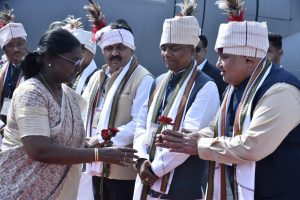 वहीं मुख्यमंत्री विष्णुदेव साय ने कहा कि मां दंतेश्वरी की पावन, ऐतिहासिक एवं आस्था से परिपूर्ण धरती पर राष्ट्रपति द्रौपदी मुर्मु जी का हृदय से स्वागत एवं अभिनंदन है। इनका आगमन बस्तर अंचल सहित समस्त छत्तीसगढ़ के लिए गर्व, सम्मान और प्रेरणा का क्षण है। आदिवासी संस्कृति, परंपरा और समृद्ध विरासत से सुसज्जित इस पावन क्षेत्र में उनकी गरिमामयी उपस्थिति प्रदेश के विकास, जनजातीय अस्मिता और नई संभावनाओं को और अधिक सशक्त करने का मार्ग प्रशस्त करेगी।