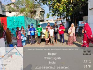 रायपुर। आज रायपुर नगर पालिक निगम जोन क्रमांक 10 अंतर्गत रानी दुर्गावती वार्ड क्रमांक 49 क्षेत्र अंतर्गत प्रेम पार्क क्षेत्र पुरैना में स्वच्छता सर्वेक्षण अभियान 2025 – 2026 के अंतर्गत नगर निगम जोन 10 स्वास्थ्य विभाग द्वारा स्वच्छता जनजागरुकता अभियान चलाया गया जिसमें रहवासियों को 4 तरह के घर के कूड़े को व्यवस्थित करने का सहज तरीका 4 बाल्टियों में गीला , सूखा, विशेष देखभाल और सेनेटरी कूड़ा पृथक – पृथक रखकर तथा सफाई मित्र को सफाई वाहन में देकर रायपुर शहर को स्वच्छ राजधानी शहर बनाने सहभागिता दर्ज करवाने की विनम्र अपील की गई।