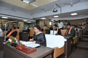 रायपुर। आज रायपुर नगर पालिक निगम के सभापति सूर्यकान्त राठौड़ के सभापतित्व में रायपुर नगर निगम सचिवालय द्वारा नगर निगम मुख्यालय भवन महात्मा गाँधी सदन के चतुर्थ तल पर स्थित सभागार में विशेष सामान्य सभा (विशेष सम्मिलन) की बैठक आहुत की गयी।