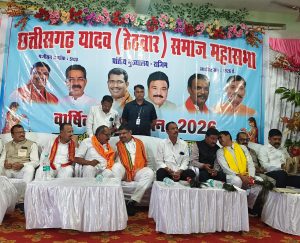 रायपुर। प्रदेश में यादव ठेठवार समाज के प्रांतीय महा अधिवेशन में छत्तीसगढ़ शासन के माननीय शिक्षा मंत्री गजेन्द्र यादव की गरिमामयी उपस्थिति रही। प्रदेश स्तरीय इस भव्य कार्यक्रम का शुभारंभ भगवान राधा-कृष्ण मंदिर में राधारानी एवं श्रीकृष्ण जी को माल्यार्पण, आरती एवं पूजन-अर्चना के साथ किया गया। इसके पश्चात यादव समाज का ध्वज फहराकर वार्षिक अधिवेशन का विधिवत प्रारंभ हुआ।